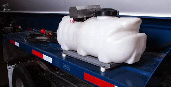 Our Truck Disinfect System integrates many of the necessary common components to apply disinfectant to the tires when approaching and leaving a farm. The optional spray wand allows application of the disinfect to the truck body and undercarriage when required. The system is easy to use and effective for commercial vehicles serving the intensive animal production industries.
